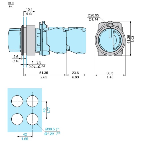 Schneider ZB5AZ022 Flush mounting kit ZB5AD, ZB5RTA, ZB5AD.8, ZB5RZA0, ZB5AK, ZB5AA.6, ZB5AD.9, ZB5AJ, ZB5AW, ZB5AH..3 Selector switch high bezel high guard, Illuminated push-button high bezel high guard Harmony XB5 Mounting and fixing Accessories 1.20 in (30.5 mm IP66 IEC 60529