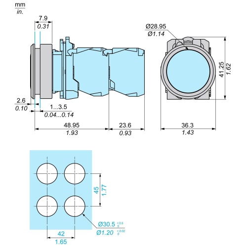 Schneider ZB5AZ021 Flush mounting kit ZB5AV, XB5EV, XB7EV, XB7NL, ZB5AL, XB7NA, ZB5AA flush, ZB5AH flush, XB7NJ, XB7NG, XB7ND, XB7NW Pilot light, Push-button Harmony XB5 Mounting and fixing Accessories 1.20 in (30.5 mm IP66 IEC 60529 front face, IP69 IEC 60529 front face, IP69K D
