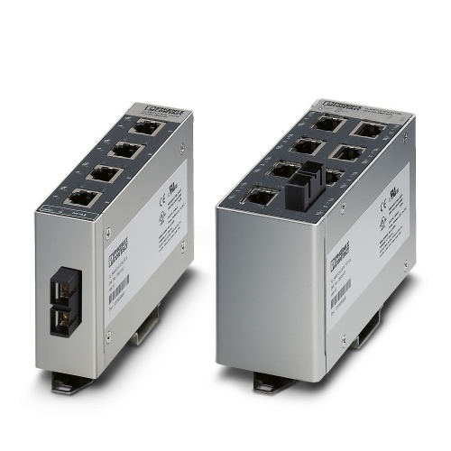 Phoenix Contact 2891851 An Ethernet switch features four 10/100Mbps RJ45 ports and one 10/100Mbps fiber optic (FO) port, with support for single-channel (SC-D) format. It also includes automatic detection of transmission speed, switching between 10 and 100 Mbps on RJ45 connections, as well as an autocrossing function that enables the switch to automatically adapt to changing network conditions.