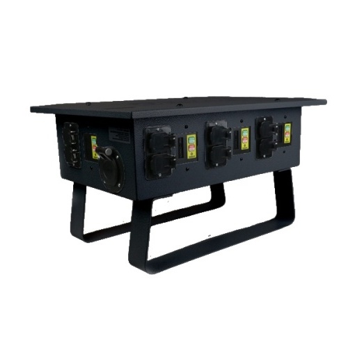 Ericson 1066FS-BK 1066FS OSCAR PDU, HAMMERD BLACK, 50A 240V NEMA3R W/ (6) NEMA5-20 DUPLEX, (6) 20A BREAKERS, (1) L6-30 W/ NON-GFCI BREAKER & 50A CS6369 FEED-THRU. PAINTED HAMMERED BLACK HOUSING AND LEGS