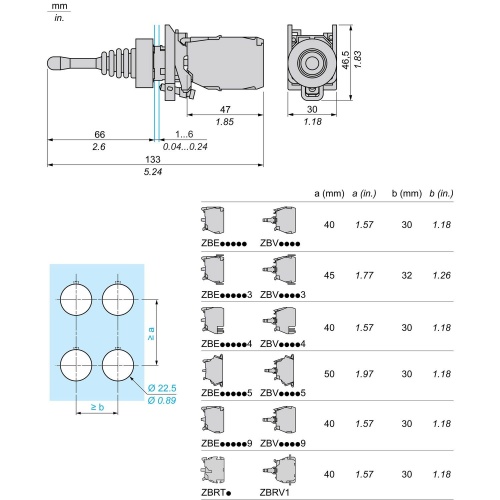 Schneider XD4PA14 Stay put, long operating shaft 2.13 in (54 mm Joystick controller 1 NO 5 positions Chromium plated metal Round Standard 4 directions 1 Harmony XDA 10 A EN/IEC 60947-5-1 1000000 cycles, AC-15, 2 A 230 V 3600 cyc/h 0.5 EN/IEC 60947-5-1 appendix C, 1000000 cycles,