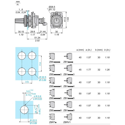 Schneider XB5AD912R4K7 <= 30 V AC, <= 42 V DC Potentiometer Ø 6 mm shaft Dark gray plastic Round knurled knob, with white 1 Harmony XB5 Standard Cermet XB5 0.87 in (22 mm 0.11 lb(US (0.048 kg 1015.26 psi (7000000 Pa 131 °F (55 °C 0.1 m 50000 cycles Complete product TH -40-158 °F