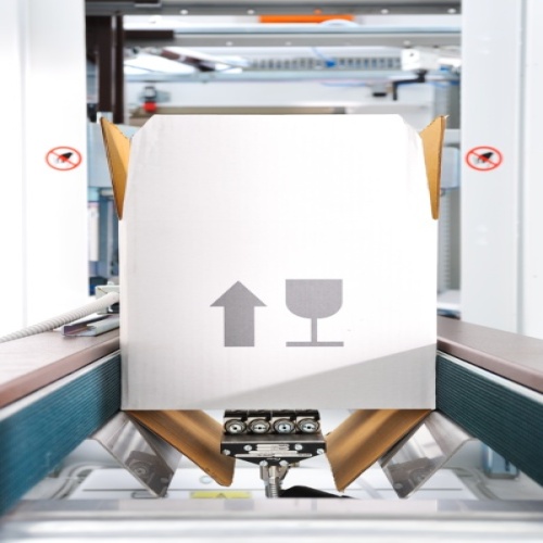 The machine is easily adjusted to the required box width and height. The side belt conveyors are driven by one motor to ensure a simultaneous transport speed and a perfect box sealing.