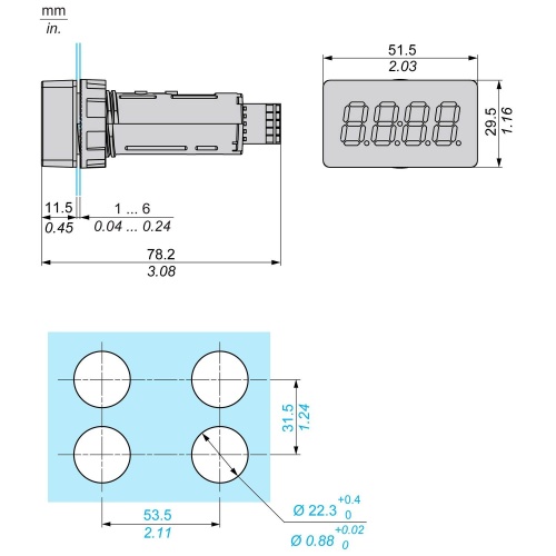 Schneider Electric XBH1AA0R4 Digital panel meter, plastic, black, Ø22, 4 digit red LED display, 4...20 mAmp input