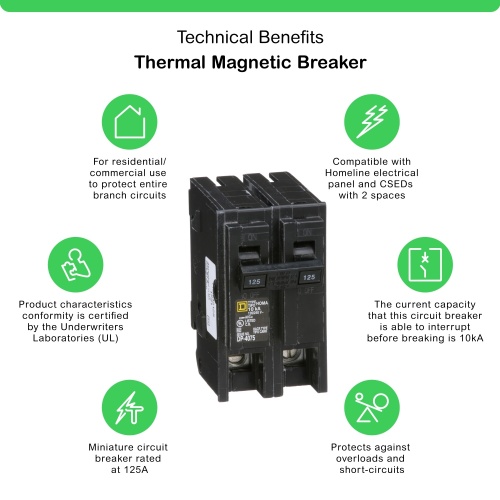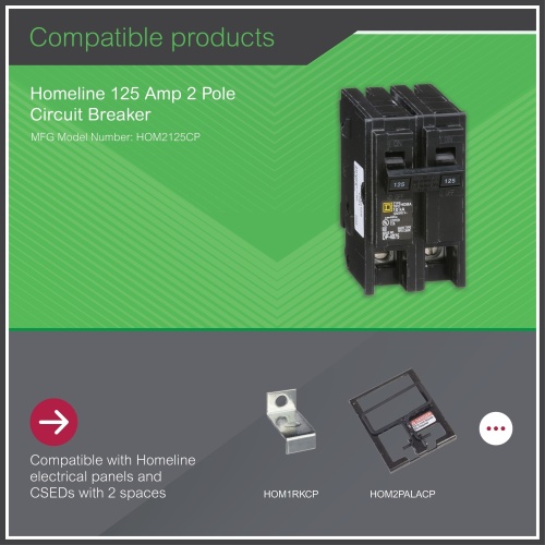 Schneider HOM2125 125 A 120/240 VAC 2P HACR rated Box lugs Plug-in Miniature circuit-breaker Homeline 00151 - HOM MAIN BREAKERS Miniature Circuit Breakers Square D™ Homeline™ Miniature Circuit Breakers Homeline Plug-on Circuit Breakers