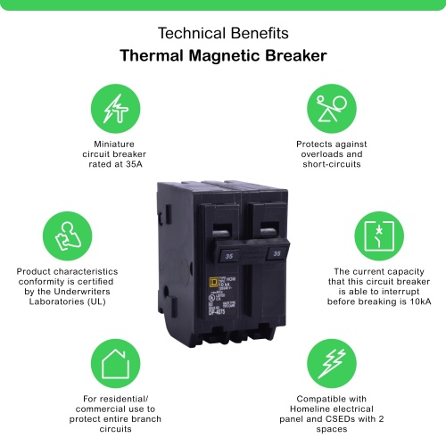 Schneider HOM235CP 35 A 120/240 VAC 2P HACR rated Box lugs Plug-in Miniature circuit-breaker Homeline 00046 - HOM/T 15-30A 1P; 15-60A 2P Miniature Circuit Breakers Square D™ Homeline™ Miniature Circuit Breakers Homeline Plug-on Circuit Breakers (MUST BUY IN PACKS OF 5)
