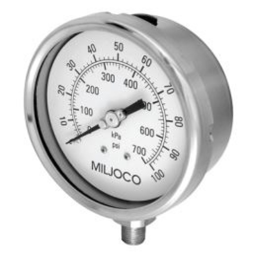 The Miljoco Models P4098LY-SS & PLF4098LY-SS are attractively-priced gauges for applications where the process fluid requires stainless steel wetted components