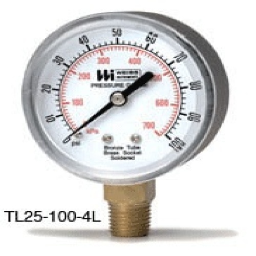 The Weiss Series TL Gauges are intended for general service conditions, for pressure or vacuum on air, oil, water, gas or other mediums that do not attack brass.