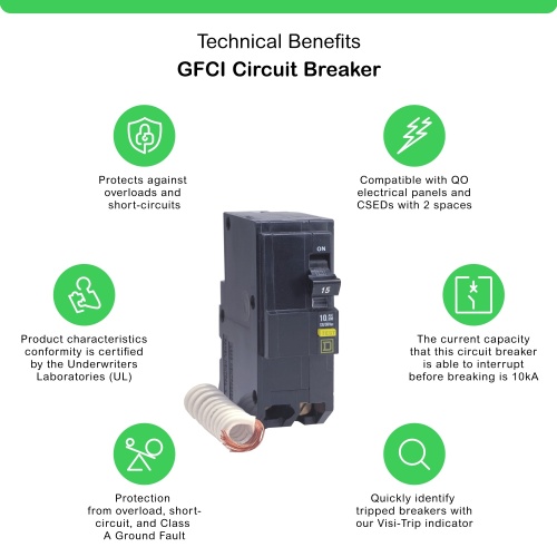 Schneider QO220GFI 20 A 120/240 VAC, 120 VAC 2P Not rated Pressure plate Plug-in Miniature circuit-breaker 104 °F (40 °C 10 kA 120/240 VAC 50/60 Hz, 10 kA 120 VAC 50/60 Hz QO 00003 - QO 1&2 POLE GFI CB 30A MAX Miniature Circuit Breakers Square D™ QO™ and QOB