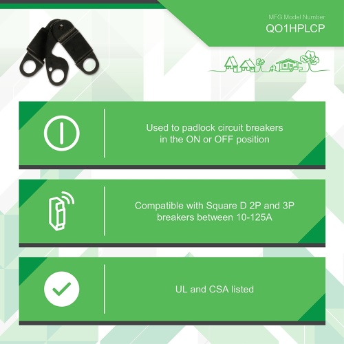 This QO mini circuit breaker accessory is a padlock device for 2 to 3 pole breaker handles