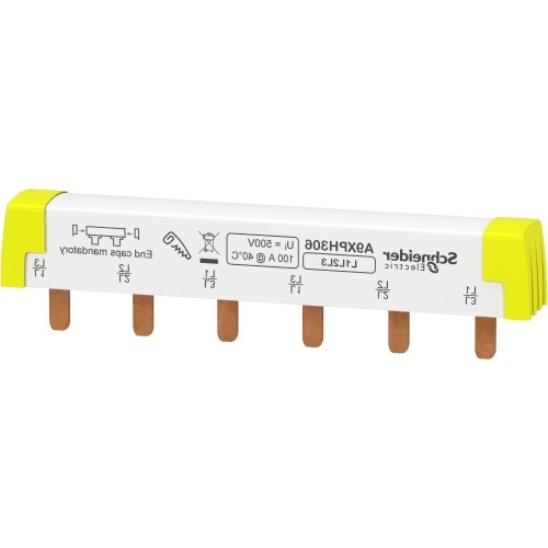 Schneider A9XPH306 Comb busbar IEC 60947-7-1, IEC 61439-2 415 VAC Acti 9 iC60, Acti 9 iK60, Acti 9 iID, Acti 9 iID K, Acti 9 iSW, Acti 9 iSW-NA, Multi 9 C60 Acti 9 2 ways 3 L Cuttable 6 L1 L2 L3 00908 - C60N SUPPLEMENTARY PROTECTORS 4.33 in (110 mm DE2 00785901515906 1 0.24 lb(US