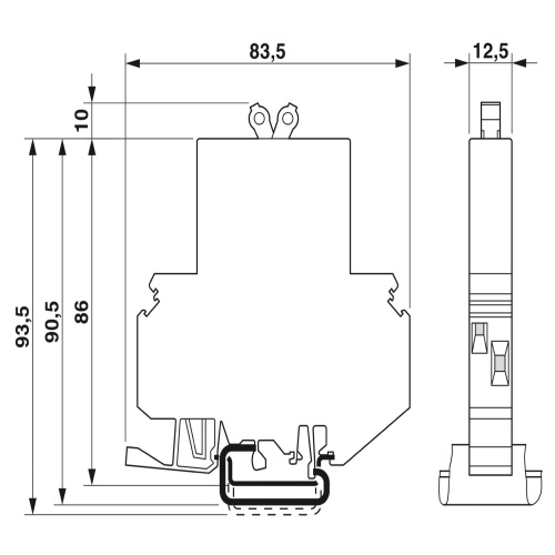 Phoenix Contact 0914316 A thermal-magnetic circuit breaker with a single pole operation and a fast blow time is designed to have a universal foot that can be mounted on either the NS 32 or NS 35 mounting base.