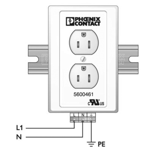 Phoenix Contact 5600461 EM-DUO 120/15. Double Outlet 125 VAC 15 Amp AC Receptacle Din Rail Mount with screw connection,with UL rating, Ivory.