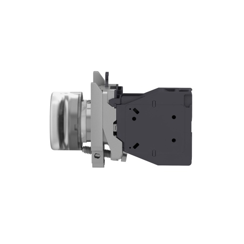 Schneider XB4BP21GEX Complete push-button Black projecting Booted (clear silicon 1 NO spring return Screw clamp terminals, 2 x 1.5 mm² with cable end EN/IEC 60947-1, Screw clamp terminals, 1 x 2.5 mm² without cable end EN/IEC 60947-1 Zamak Chromium plated metal 0.87 in (22 mm Rou