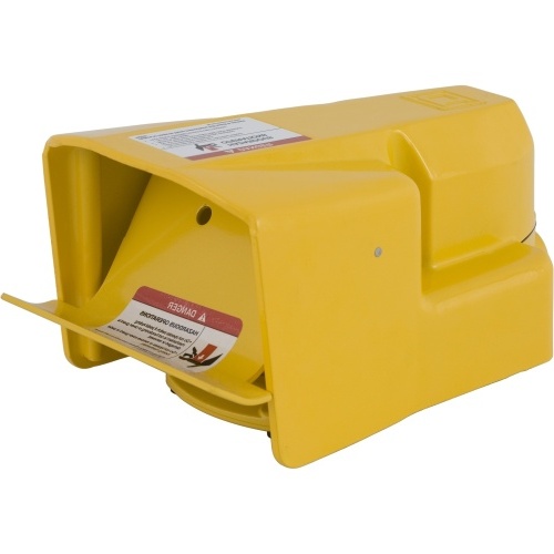This foot switch has an oversized pedal shield, side shields and a safety door