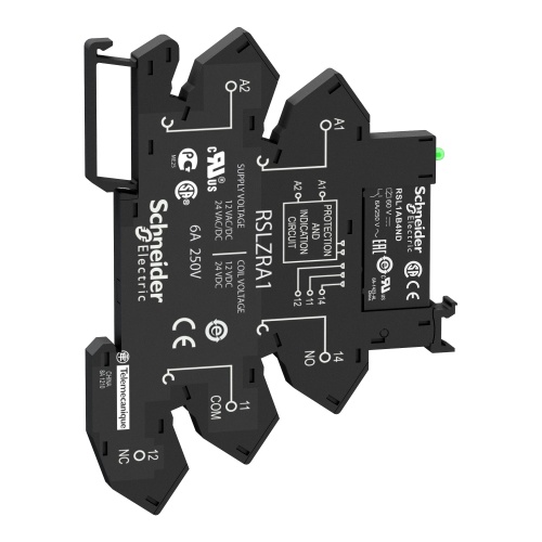 Schneider RSL1PRJU 1 C/O Interface relay With Flat (PCB type Silver alloy (AgSnO2 Without push-button Separate 35 mm symmetrical DIN rail 6 A 250 V AC 0.5 mm mounting distance 12 V DC 277 V 5 ms reset, 12 ms 6 A -40-131 °F (-40-55 °C 6 A 1 C/O AC-1/DC-1IEC/UL 60000 cycles resisti (MUST BUY IN PACKS OF 10)