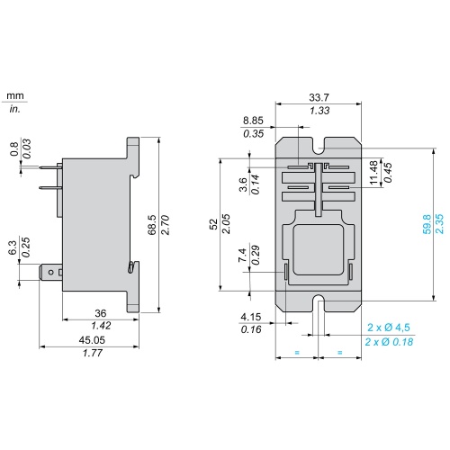 Schneider RPF2AB7 2 NO Power Flat Silver tin oxide Without lockable test button DIN rail, Panel 24 V AC 250 V IEC 25 A -40-131 °F (-40-55 °C relays side by side without a gap, 30 A -40-131 °F (-40-55 °C 13 mm gap between two relays 30 A 277 V AC NO UL, 20 A 28 V DC NO UL, 30 A 25 (MUST BUY IN PACKS OF 10)
