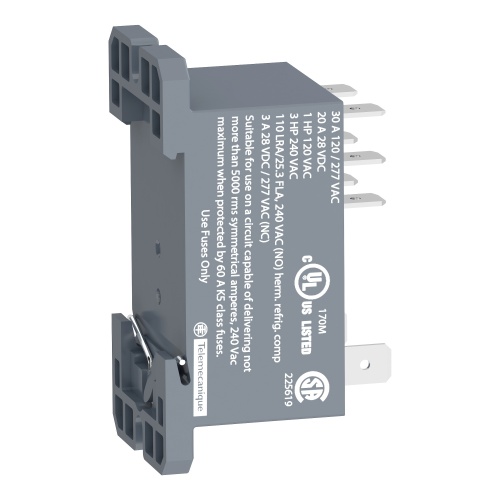 Schneider RPF2BB7 2 C/O Power Flat Silver tin oxide Without lockable test button DIN rail, Panel 24 V AC 250 V IEC 25 A -40-131 °F (-40-55 °C relays side by side without a gap, 30 A -40-131 °F (-40-55 °C 13 mm gap between two relays 30 A 277 V AC NO UL, 20 A 28 V DC NO UL, 30 A 2 (MUST BUY IN PACKS OF 10)