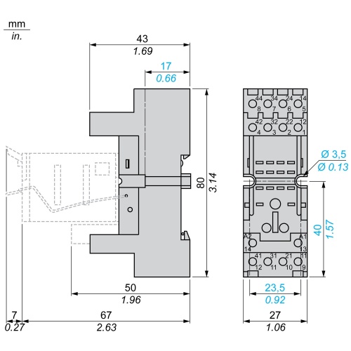 Schneider Electric RXZE2M114M Socket, mixed contact, relay type RXM2 RXM4, connector connection, 250 V AC