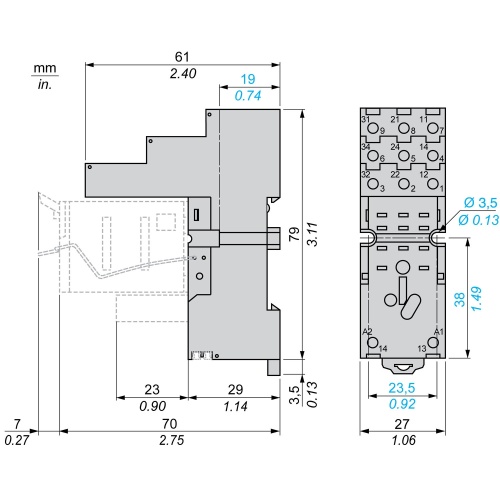 Schneider Electric RXZE2S111M Socket, separate contact, 10 A, relay type RXM3, screw connector, 250 V AC