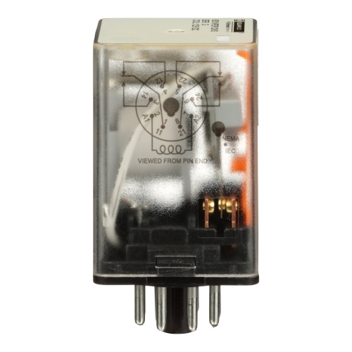 Schneider Electric 8501KPDR12V63 Plug in relay, Type KP, tubular, 1 HP at 277 VAC, 10A resistive at 120 VAC, 8 pin, DPDT, 2 NO, 2 NC, 125 VDC coil