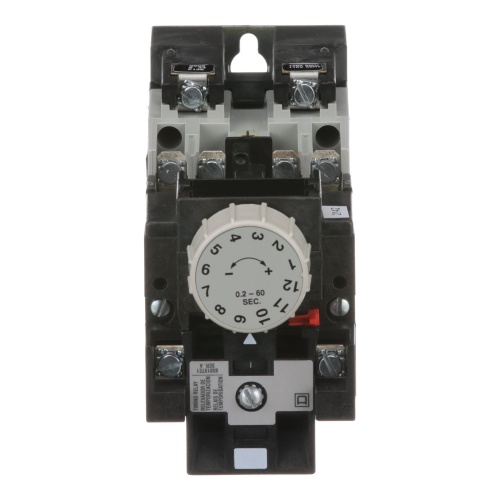 This relay is supplied with a one minute on delay timing attachment on a standard relay