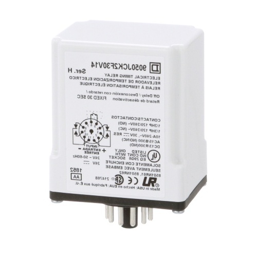 Schneider Electric 9050JCK2F30V14 Timing Relay, Type JCK, plug In, off delay, fixed time, 30 seconds, 10A, 240 VAC, 24 VAC/DC