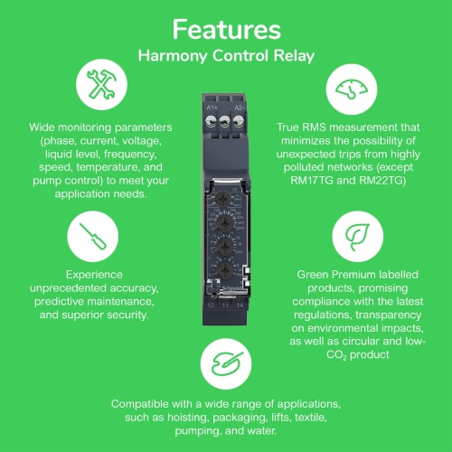 Schneider RM35S0MW Speed control relays RM35S Overspeed, Underspeed 1.38 in (35 mm Zelio Control 0.05-0.5 s, 0.5-5 min, 1-10 min, 1-10 s, 0.5-5 s, 0.1-1 s, 0.1-1 min +/- 0.1 %/°C with temperature variation, < +/- 1 % over the whole range with voltage variation 5 A 1 C/O Modular m