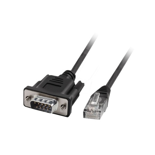 It is equipped with one RJ45 male connector at one end and one 9-way male SUB-D connector at the other end