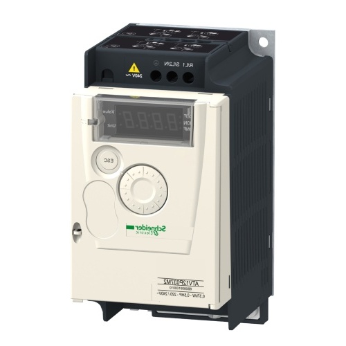 Schneider ATV12P037M3 Without EMC filter 3 phase 0.37 kW 0.55 HP 200-240 V - 15-10 % Variable speed drive 3.6 A 200 V, 3 A 240 V IP20 without blanking plate on upper part Modbus 2.4 A 4 kHz Altivar 12 Variable Frequency Drives VFD Variable speed drives Drives on base plate *We recommend adding a reactor to mitigate harmonics and protect the drive from surges.