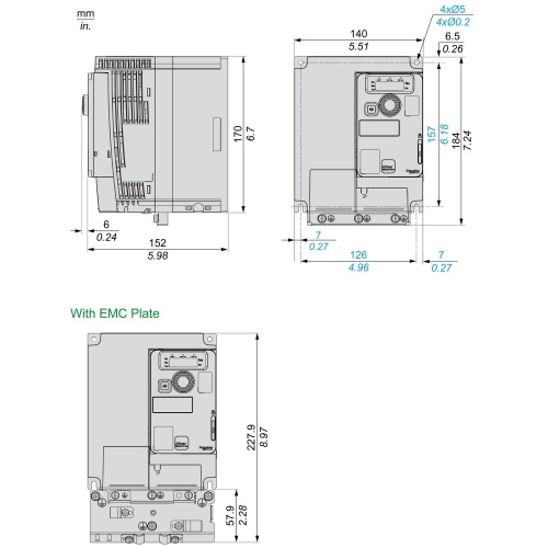 Schneider Electric ATV320U22S6C variable speed drive, ATV320, 2.2 kW, 525...600 V, 3 phases, compact