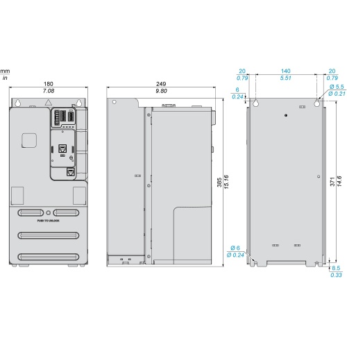 Schneider ATV340D15N4 Integrated 65.62 ft (20 m EN/IEC 61800-3 category C3 3 phase 18.5 kW normal duty, 15 kW heavy duty 25 HP normal duty, 20 HP heavy duty 380-480 V - 15-10 % Variable speed drive 44.9 A 380 V without line choke heavy duty, 35.7 A 480 V without line choke heavy *We recommend adding a reactor to mitigate harmonics and protect the drive from surges.