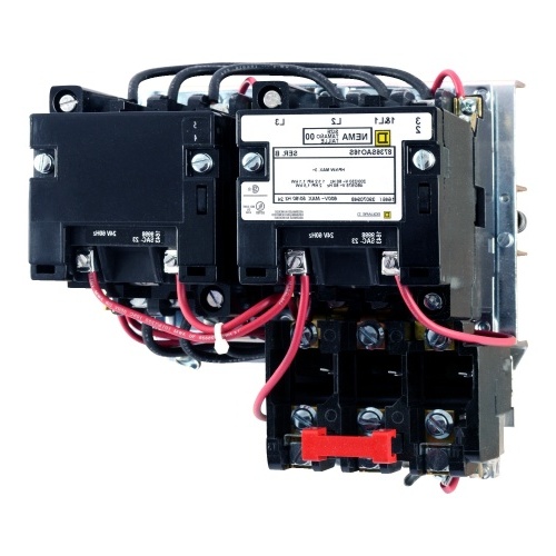 NEMA reversing starters consist of two 8502S NEMA contactors that are mechanically and electrically interlocked and an overload relay