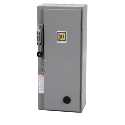 Schneider Electric 8538SCG11V02S NEMA Non-Reversing Combination Starter, Type S, nonfusible disconnect, Size 1, 27A, 10 HP at 600 VAC polyPhase, 120 VAC coil, NEMA 1