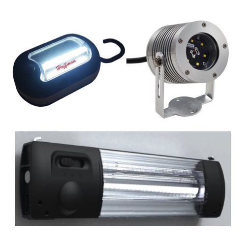 Hoffman’s got a few types: an LED light kit, fluorescent units and motion‑sensing models. Magnetic or mechanically fastened options, both fit various enclosure sizes and mounting requirements.