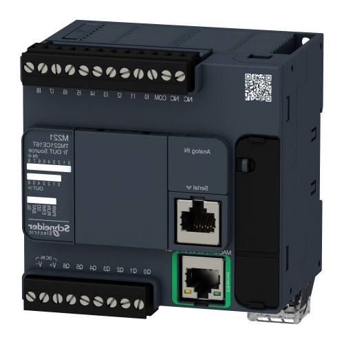 Schneider TM221CE16T 16 7 transistor 2 fast output Logic controller 9, discrete input 4 fast input IEC 61131-2 Type 1 24 V Transistor 2 0-10 V 10 bits 256 kB user application and data RAM 10000 instructions, 256 kB internal variables RAM 24 V DC 10BASE-T/100BASE-TX 1 328.08 ft (100 m copper cable removable screw terminal block for inputs, removable screw terminal block for outputs, terminal block, 3 for connecting the 24 V DC power supply, connector, 4 for analogue inputs, Mini B USB 2.0 connector for a programming terminal USB port mini B USB 2.0, Non isolated serial link serial 1 RJ45 RS232/RS485, Ethernet RJ45 Top hat type TH35-15 rail IEC 60715, Top hat type TH35-7.5 rail IEC 60715, plate or panel with fixing kit USB port USB - SoMachine-Network, Non isolated serial link Modbus master/slave - RTU/ASCII or SoMachine-Network, Ethernet IP20 with protective cover in place Modicon M221 Na