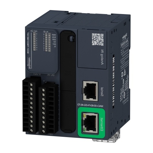 Schneider TM221ME16T 16 8 transistor 2 fast output Logic controller 8, discrete input 4 fast input IEC 61131-2 Type 1 24 V Transistor 2 0-10 V 10 bits 256 kB user application and data RAM 10000 instructions, 256 kB internal variables RAM 24 V DC 10BASE-T/100BASE-TX 1 328.08 ft (100 m copper cable terminal block, 3 for connecting the 24 V DC power supply, connector, 4 for analogue inputs, Mini B USB 2.0 connector for a programming terminal, removable screw terminal block, 10 for inputs, removable screw terminal block, 11 for outputs USB port mini B USB 2.0, Non isolated serial link serial 1 RJ45 RS232/RS485, Ethernet RJ45 Top hat type TH35-15 rail IEC 60715, Top hat type TH35-7.5 rail IEC 60715, plate or panel with fixing kit USB port USB - SoMachine-Network, Non isolated serial link Modbus master/slave - RTU/ASCII or SoMachine-Network, Ethernet IP20 with protective cover in place Modicon