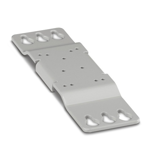 Phoenix Contact 2938235 A universal wall adapter is designed to provide a secure mounting option for devices, especially during intense vibrations, by screwing it directly onto the mounting surface and then attaching the adapter to the top or bottom of the device.