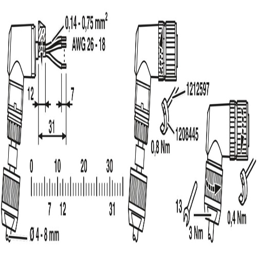 Phoenix Contact 1424661 The connector features a universal design with an angled M12 socket and a push-lock spring connection, encased in a zinc die-cast shell that is both shielded and nickel-plated, suitable for applications where cables of varying diameters from 4mm to 8mm need to be connected.