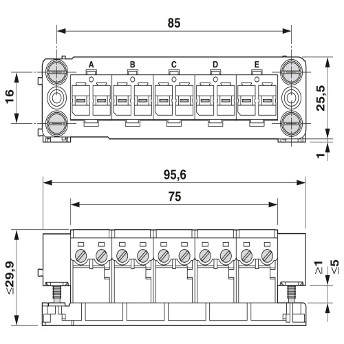 Phoenix Contact 1607335 - VARIOCON - 10 Positions - CuZn - 30 AWG - 20 Amp - 400 V