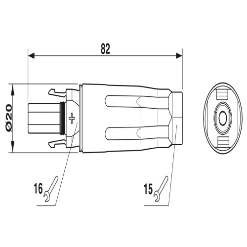 Phoenix Contact 1020776 The connector has a SUNCLIX range in black color and is designed for one position, with a minimum conductor cross section of 2.5 mm² and a maximum of 6 mm², rated at 1500 V DC and capable of handling 35 A of current. The connection method is spring-cage, using a socket type contact, and can accommodate cables with diameters between 5 mm and 8 mm.