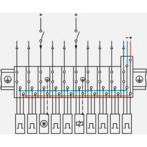 Unlike the DIK terminal blocks, the lower level of these output terminal blocks makes direct contact with the DIN rail and as a PE connection are marked yellow-green
