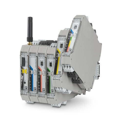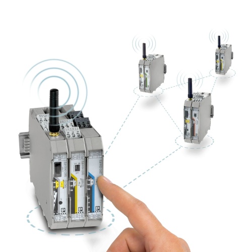 Phoenix Contact 2901541 The Radioline is a 2.4 GHz wireless transceiver that can be expanded with various I/O modules, featuring an RSMA female antenna connection and supporting point-to-point, star, and mesh networks. It enables up to 250 stations within a range of up to 5 km when a clear line of sight is maintained, allowing for global deployment.