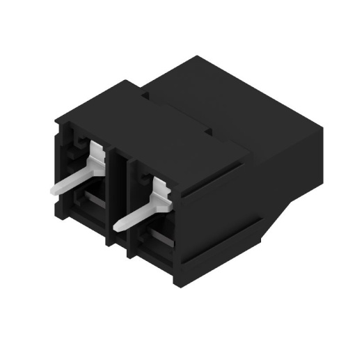 This PCB terminal provides connections for 1000 V, 6 mm² conductor cross-section and 32 A with proven clamping yoke connection at 9.52 mm pitch, conductor outlet direction in 90° design.