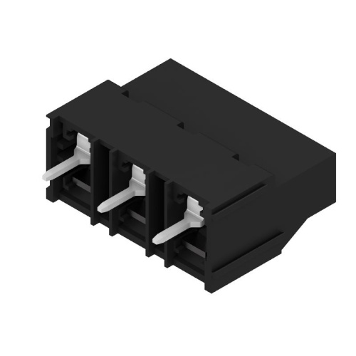 This PCB terminal provides connections for 1000 V, 6 mm² conductor cross-section and 32 A with proven clamping yoke connection at 9.52 mm pitch, conductor outlet direction in 90° design.