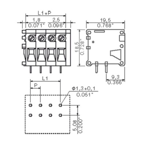 Conductor entry and screw connection in the same direction on this PCB terminal with 5.08 mm pitch for conductor cross-sections up to 2.5 mm².