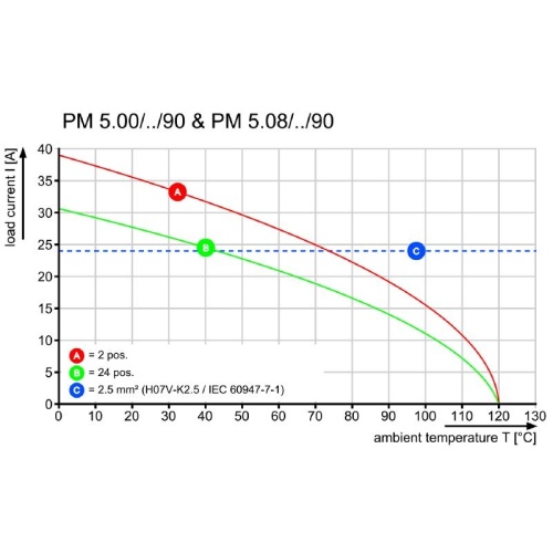 PCB terminal with leaf spring connection at 5.00 and 5.08 mm pitch.
