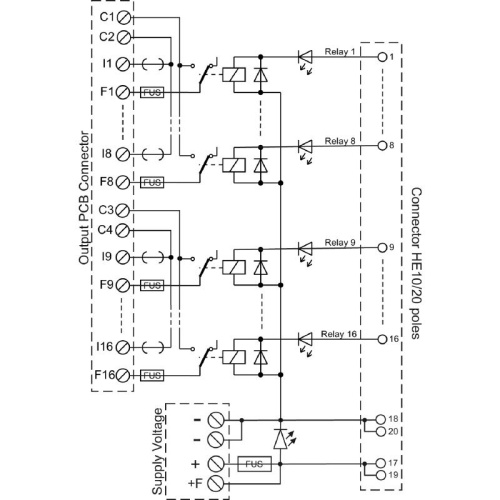 Digital output interface per-relay for electrical signal transmission between the PLC and the field.