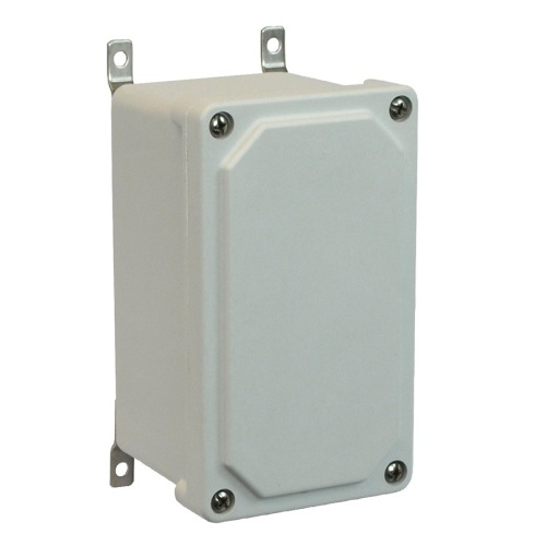 Allied Moulded AM743 ULTRAGUARD Fiberglass reinforced polyester Type 4x Small Junction Box with 4 screw lift off cover, non-corrosive and non-conductive is lightweight and easy to modify. Ideal to protect electronic and electrical components, controls and instruments in outdoor and indoor applications. Rigid design compression molded SMC box and Cover ideal for extreme temperature and corrosive environments.