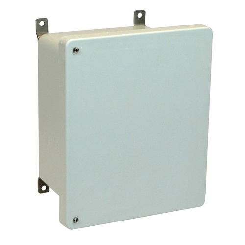 Allied Moulded AM1086H ULTRAGUARD Fiberglass reinforced polyester Type 4x Junction Box Enclosure 10" x 8" x 6" (HXWXD) Inside Dimension. Opaque cover with hinged 2 screw cover. 316 Stainless Steel hinge, external hardware and plated carbon steel internal hardware.
